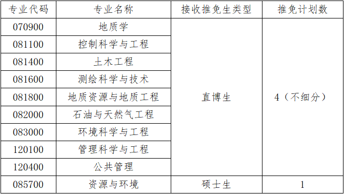 二、接收推免生學科專業(yè)及計劃