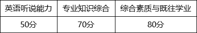 2.綜合面試。重點(diǎn)考察考生的思想政治素質(zhì)和品德考核、專業(yè)綜合能力、創(chuàng)新潛質(zhì)和能力、外語能力水平、綜合素質(zhì)評價(jià)、心理健康狀況等。綜合面試一般包括考生自述、考生隨機(jī)抽題作答、面試小組提問交流、專家評分等環(huán)節(jié),考核時(shí)長一般不少于20分鐘。綜合面試滿分200分,《面試考核評分細(xì)則》見附件3。各部分分值及占比如下: