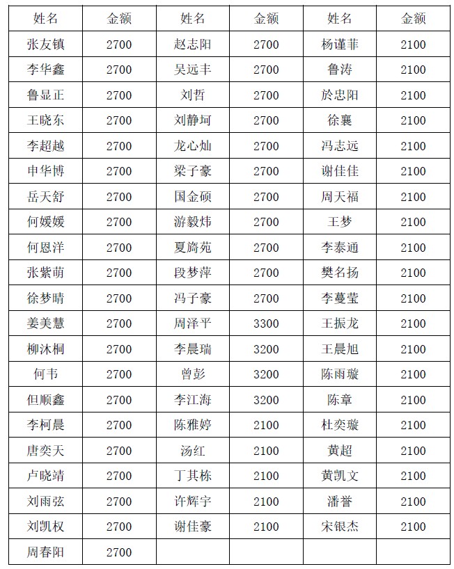 根據(jù)本科生院《關(guān)于開展2023年國家獎助學(xué)金評選工作的通知》要求,依據(jù)國家助學(xué)金評選辦法,國家助學(xué)金金額每生每年在2000元至4500元范圍內(nèi)確定,不可分檔超過4檔,不可突破上下限額。本著“以學(xué)生為本,資助優(yōu)先”的原則,綜合學(xué)生困難生認(rèn)定等級,學(xué)院獎助學(xué)金評審委員會將資助金額在原評定資助標(biāo)準(zhǔn)上進(jìn)行了適當(dāng)調(diào)整。特殊困難認(rèn)定學(xué)生給予每人3200元資助,困難認(rèn)定學(xué)生給予每人2700元資助,一般困難認(rèn)定學(xué)生給予每人2100元資助。
