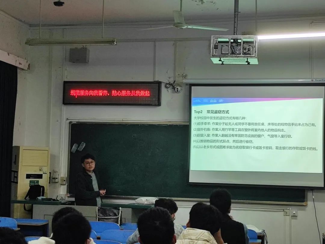 安全教育班會由輔導員相博文老師主持。他從財產(chǎn)、網(wǎng)絡(luò)、消防、國家安全等十個方面,結(jié)合實際情況深入淺出地講解了相關(guān)安全知識,強調(diào)了學校相關(guān)規(guī)定;并提醒同學們要增強安全防范意識,提高自我保護能力。