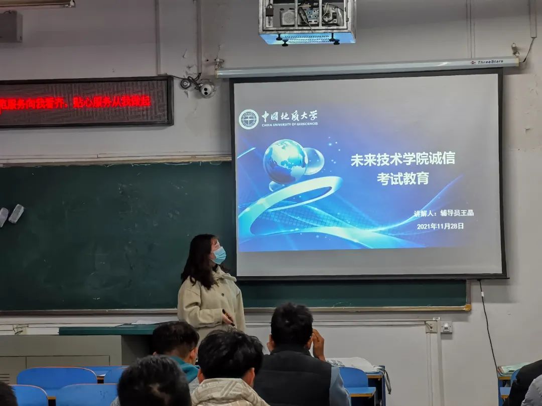 為進一步增強學生安全意識,樹立良好的考風學風,未來技術(shù)學院于2021年11月28日晚在西區(qū)教一樓503召開安全教育、誠信教育主題班會。