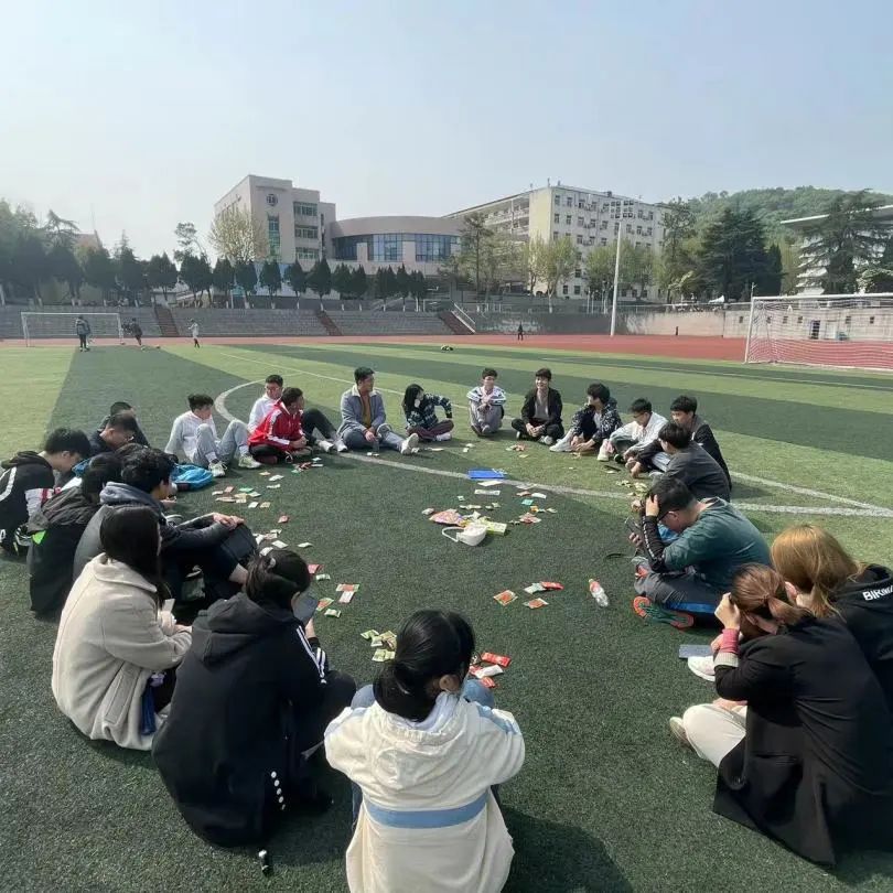 正如李白在《江南春懷》中所言:“青春幾何時(shí),黃鳥(niǎo)鳴不歇”,美好的春日就是應(yīng)該不停歇。為了激發(fā)同學(xué)們的參與度和積極性,在下午的活動(dòng)中,兩位輔導(dǎo)員相博文老師和王晶老師以及兩個(gè)班的班委共同組織了幾項(xiàng)趣味小游戲。大家席地而坐,互相自我介紹,又參與了“蹲下起立”,“氣球運(yùn)輸”等活動(dòng),不亦樂(lè)乎。