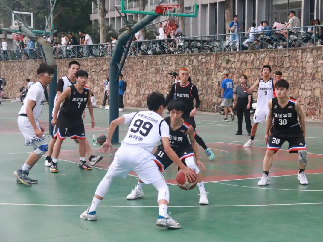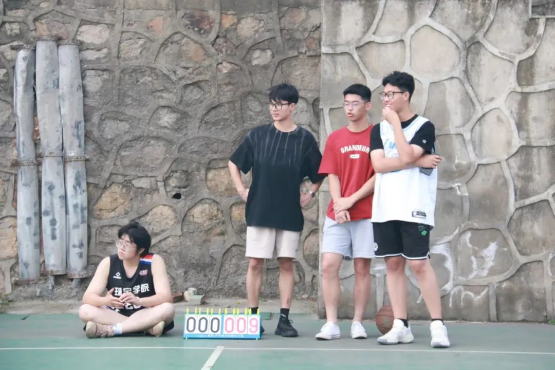 隊員們最難忘的,是5月21日對陣珠寶學院的比賽。各隊員積極準備,提前到達西區(qū)C5球場熱身。比賽開始,42號謝正揚手感火熱,連續(xù)命中三分,率先建立起領先優(yōu)勢。其他隊員也在攻防兩端積極轉換,為球隊穩(wěn)定領先的局勢,院隊一波9:0的開局引爆了現(xiàn)場氣氛。隨后對面球隊也開始發(fā)力,多次攻擊籃筐得分,不斷迫近比分。半場結束,我院以2分的微弱優(yōu)勢結束上半場的比賽。來到下半場,我院因為體能的下降,面對高年級隊員得分愈發(fā)困難,但我院全體隊員不懼強敵,沉著應戰(zhàn),完整詮釋了什么是拼搏精神,最終以27:30的微小差距憾負珠寶學院。