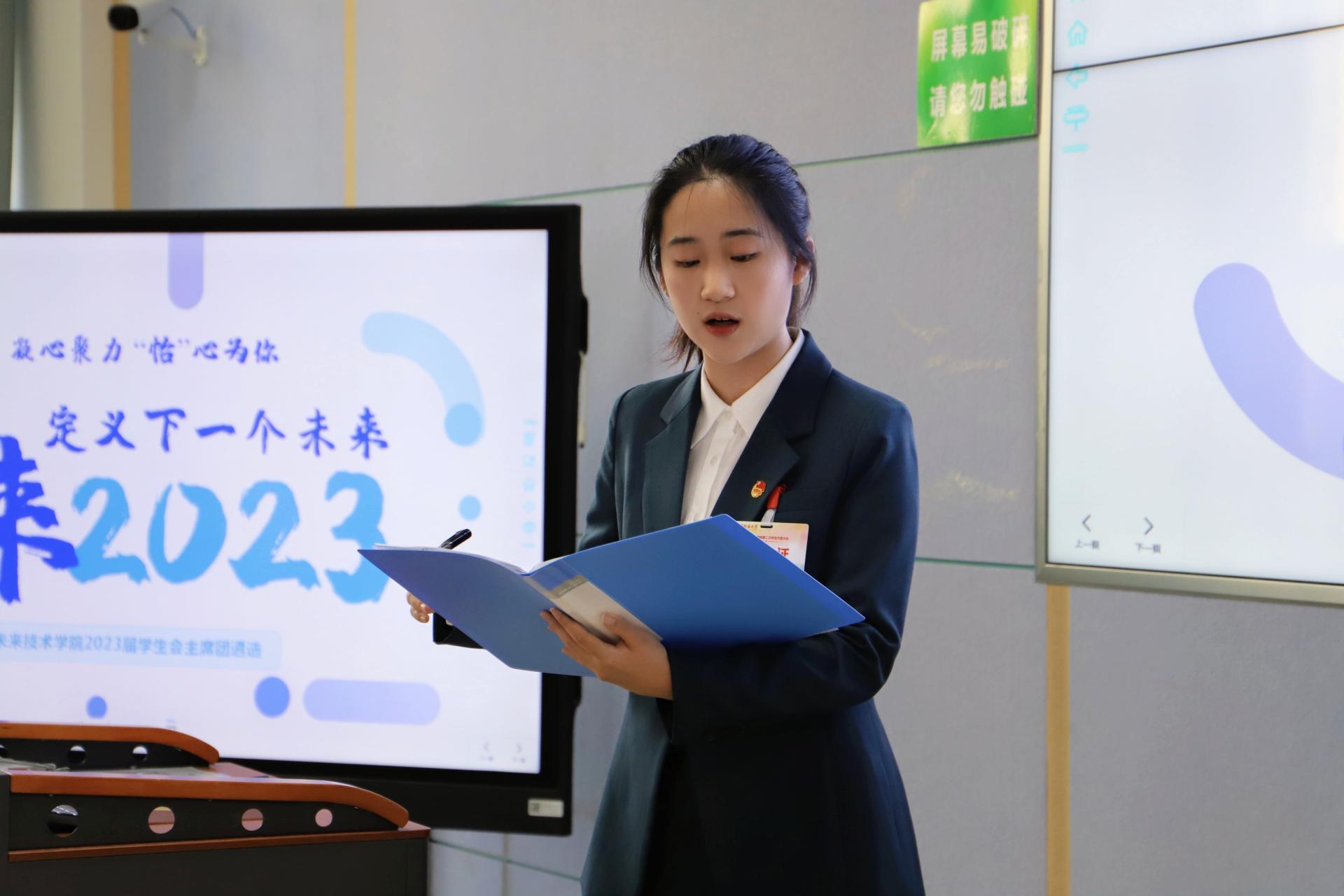 經全體代表不記名投票,會議選舉產生了未來技術學院學生會2023屆主席團以及第二屆學代會常任代表會議常任代表,提名并通過學生會秘書長人選。