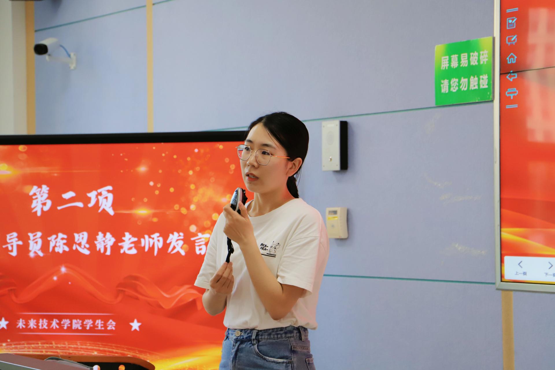 學院輔導員陳思靜發(fā)言。她表達了對首屆學生會全體工作人員的感謝,同時也對新一屆學生會建設和發(fā)展提出了期待,她希望每一位參加學生會的同學都能圍繞服務與成長、友誼與真誠、責任與奉獻,不斷增長自己的能力和才干,同時為學生會發(fā)展與學院建設貢獻青春力量。