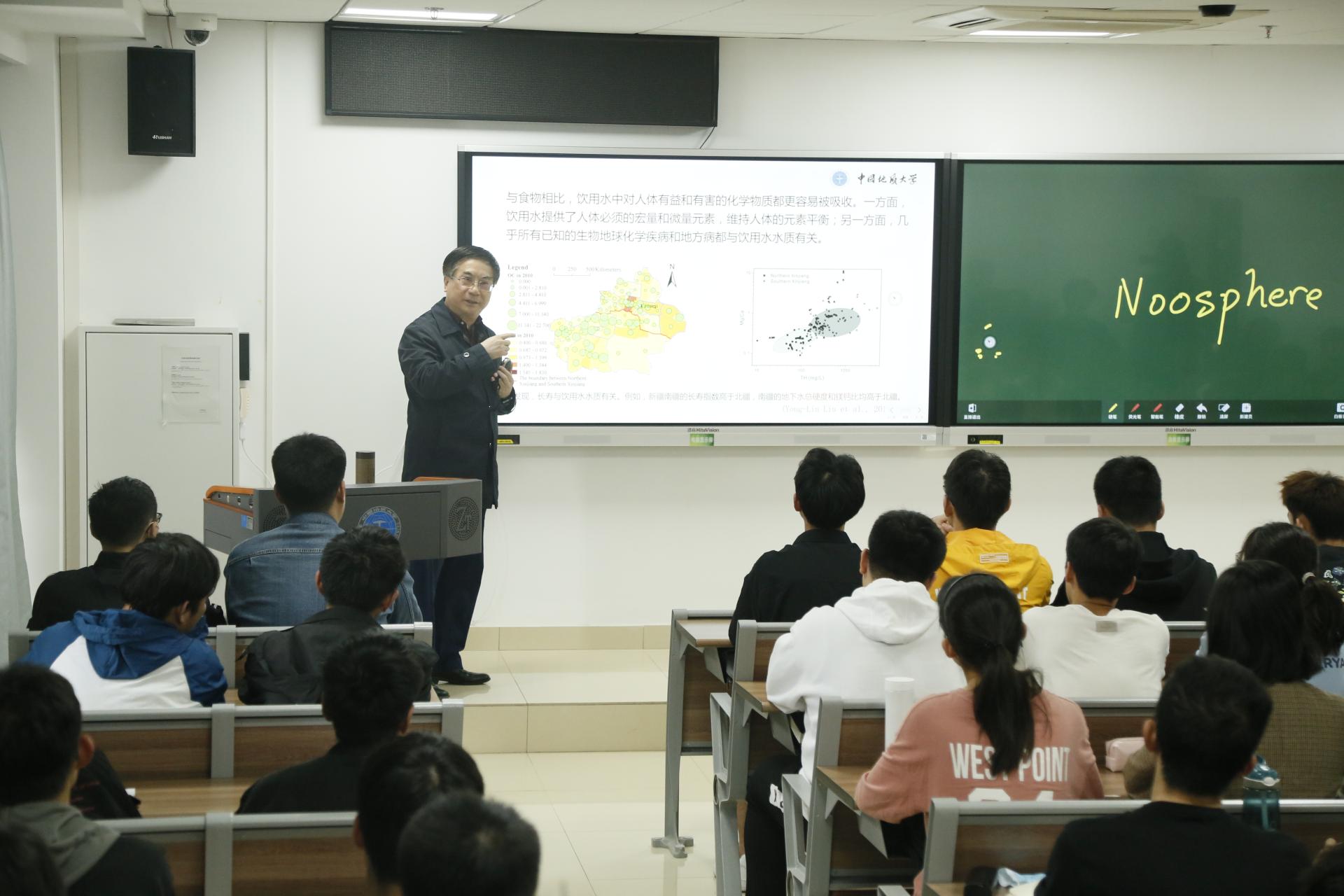 王焰新院士講授《環(huán)境水科學(xué)前沿導(dǎo)論》。王焰新圍繞“水與可持續(xù)發(fā)展”、“水質(zhì)與健康”和“可持續(xù)安全供水”三個(gè)主題展開授課,通過深入淺出的知識(shí)分析以及現(xiàn)實(shí)生活案例,讓學(xué)生們深刻理解水之于地球生態(tài)系統(tǒng)和人類社會(huì)可持續(xù)發(fā)展的重要作用。