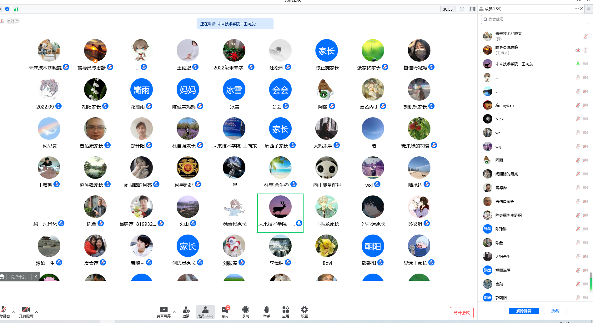 9月3日下午,未來技術(shù)學(xué)院2022級新生家長交流會以線上會議的形式順利舉行。學(xué)院院長吳敏、常務(wù)副院長陳鑫、院黨委副書記王向東、副院長宮勛、人工智能研究院副院長曾德澤、王倫澈、劉振燾,未來智能技術(shù)研究所所長陸承達(dá)、新生班主任代表鄭飛、學(xué)院辦公室全體老師及2022級新生家長共170余人參會,黨委副書記王向東主持會議。