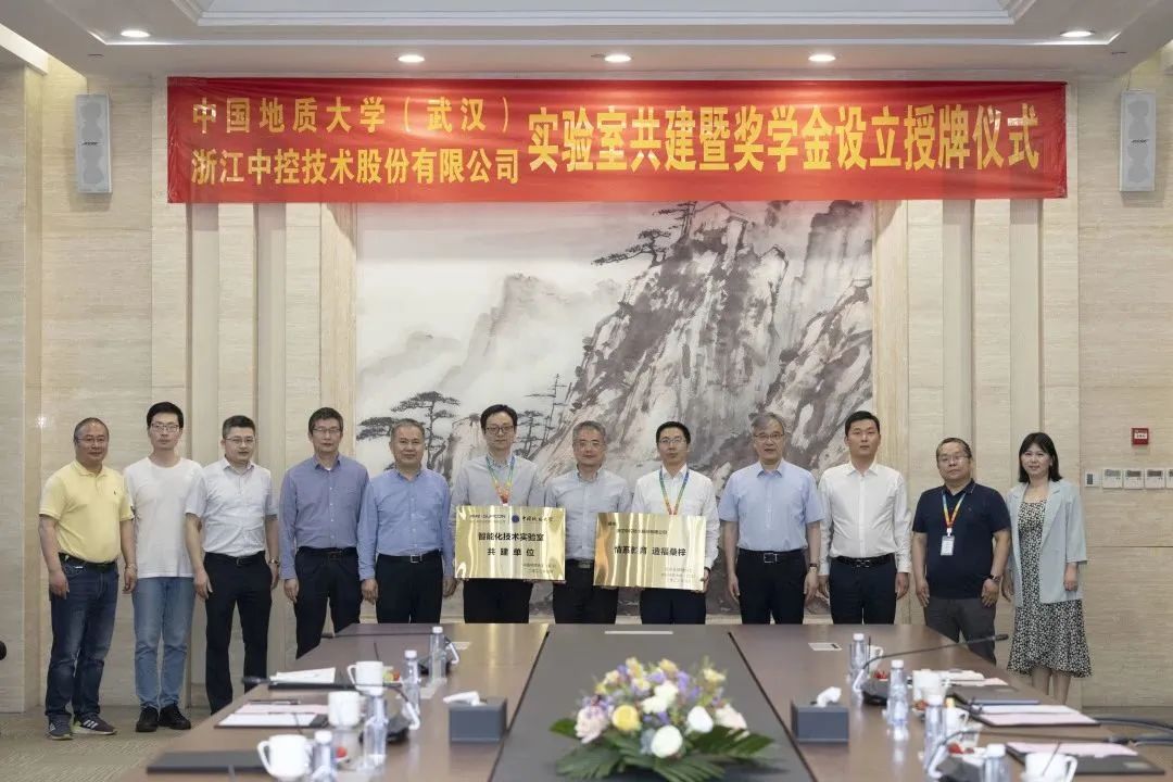 在“實驗室共建暨獎學(xué)金設(shè)立”授牌儀式上,吳敏代表中國地質(zhì)大學(xué)(武漢)向中控技術(shù)頒發(fā)了“智能化技術(shù)實驗室共建單位”及“情系教育 造福桑梓”紀(jì)念牌,以表達(dá)感謝。